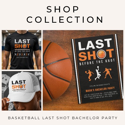 Celebrate the groom’s last shot before the knot with this black and orange striped basketball themed bachelor party card deck. Featuring a basketball and cool basketball player silhouettes, it's a fun and sporty choice for a ballers night out or bachelor weekend. Personalize it with the groom’s name and event details for a custom keepsake!