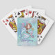 Sirena de pelo marrón claro jugando cartas para un cumpleaños de chica con colores azul, rosa y dorado. Personalizado con el nombre del niño o cualquier texto personalizado. Cuenta con un bonito delfín, una tortuga, estrellas, un castillo y criaturas marinas con falsas escalas purpurinas en el fondo.
