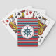 Diseño náutico con decoración de ruedas de vela en forma redondeada con estrellas sobre fondo rayado rojo, azul y blanco