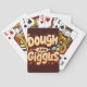 Un diseño caprichoso y juguetón con el texto "Dough and Giggles" en una fuente caricaturizada con colores vivos y juguetones. La composición general es desenfadada e invitante, evocando un sentido de alegría y risas.