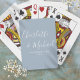 Llevando nombres de estilo de firma, estas cartas para jugar se pueden personalizar con sus nombres y fecha especial en tipografía elegante sobre un fondo de azul desvaído. Diseñadas por Thisisnotme©