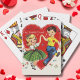 Estas adorables cartas de juego muestran un ilustracion de mediados de siglo de un niño y un chica bailando alegremente, de la mano, frente a un gran corazón rojo de San Valentín que dice 'Nuestros corazones golpean en tiempo de baile'.