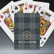 Estas cartas de juego personalizables presentan un patrón clásico de cuadros escoceses negro y gris, un logotipo dorado que puedes mantener o reemplazar con tu propio logotipo o símbolo, y un monograma personalizable. Este elegante diseño hará un gran regalo para un caballero distinguido o una mujer sofisticada. Estas cartas también harán un gran regalo para el Día del Padre, padres, abuelos, maridos, padrinos de boda o jugadores de póquer. Cambia el nombre del monograma para adaptarlo a tus necesidades de regalo.