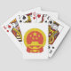 El Emblema Nacional de la República Popular de China contiene en un círculo rojo una representación de la Puerta de Tiananmen, la puerta de entrada a la Ciudad Prohibida, donde Mao declaró la fundación de la República Popular de China (RPC) en 1949. Encima de esta representación están las cinco estrellas que se encuentran en la bandera nacional. La estrella más grande representa al Fiesta comunista de China, mientras que las cuatro estrellas más pequeñas representan las cuatro clases sociales definidas en el maoísmo. El borde exterior del círculo rojo muestra cuevas de trigo y las cuevas interiores de arroz, que en conjunto representan a los trabajadores agrícolas. En el centro de la parte inferior de la frontera hay una rueda de ruedas que representa a los trabajadores industriales.