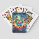 Una obra de arte vibrante y psicodélica que presenta un colorido triángulo rodeado de un agitado fondo cósmico y una bandada de cuervos. La imagen evoca una sensación de misterio, espiritualidad y energía cósmica.