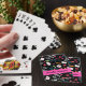 Disfruta jugando cartas con estas cartas con arte de enfermero caprichoso y personalizado con tu nombre u otras palabras. Un bar rosa fucsia luminoso cruza el frente para ser personalizado. El arte incluye palabras como Amar a una enfermera, un estetoscopio, vendas coloridas, una cruz roja, gorras de enfermería retro, corazones rojos y puntos blancos sobre un fondo negro para hacer divertidas y únicas cartas de juego. El arte caprichoso de Love a Nurse es arte original de Phyllis Dobbs. Los colores son blanco, rojo, negro, fucsia brillante rosa, verde limón, personalizable completo para hacer un gran regalo para usted o una enfermera.