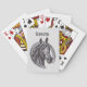 Añade un indicio de tu amor por los caballos a tu próximo juego de cartas con esta baraja personalizada de cartas. El bosquejo vintage presenta un caballo blanco y negro con una hermosa manga y una herradura sobre un fondo gris claro. Su nombre aparece encima de la imagen y se puede personalizar fácilmente.