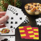Poker playing cards with design with a flag of historic county of Northumberland, in England, Great Britain; red and yellow flag based on the St. Oswald banner