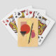 Un triángulo negro dividido en segmentos, una banda trapezoidal negra dividida en dos, un círculo rojo, un rectángulo amarillo, un cuadrado rojo pálido, un círculo violáceo y un cuadrado naranja en este arte abstracto de formas superpuestas por Richard H. Fay.