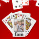 Diviértete en las noches de juegos familiares con estas cartas "colgando con la fam" geniales y de moda con "fam" en negrita y moderna tipografía. Personaliza fácilmente con tu foto familiar favorita.