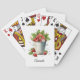 Jugar cartas con un gráfico veraniego de un montón de fresas desbordando en un cubo.