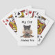 Estas cartas muestran un ilustracion oscuro y gracioso de un gato enfurecido, jugando con el estereotipo clásico de que los gatos están distantes, fríos o incluso abiertamente hostiles hacia sus dueños. Capta el humor de los gatos como pequeños tiranos que gobiernan la casa y toleran a los humanos solamente en sus propios términos.