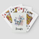Jugando cartas con un trío de mariposas revoloteando entre algunas flores de bonito. Color rosa azul y verde.