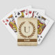 Una delicada corona de laurel está recubierta por un fondo de papel pergamino de estilo romano clásico. Este diseño presenta el monograma "U" en un rico tono de siena. Personaliza con cualquier nombre para un regalo de boda o Día del Padre realmente personalizado. Las cartas de juego monogramadas hacen regalos reflexivos para papá, abuelo, hermano, tío, esposo, novio, mejor hombre o novio. Sugerencia de diseño: para la fuente que se muestra aquí, utilice todas las mayúsculas del nombre.