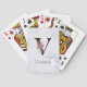 Baraja De Cartas Letra "V" Monograma Floral Mármol Blanco