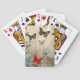 El diseño de una cubierta de cartas está hecho de una pintura acuarela de mariposas y flores de colores.
