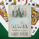 La vida es genial en el lago, cita divertida del verano. Madera blanca como fondo con diseño de agua de árboles, lago y barco. Monograma con el nombre de su familia. Perfecta forma de jugar al póquer, ir a pescar u otros juegos de cartas.