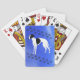 Black and white Whippet dog image with paw prints on a blue sky background.
