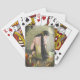 La doncella sentada al borde de la madera acaba de ver un pequeño y luminoso hada.