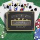 Cartas de póker temáticas negras y doradas de despedida de soltero con cuatro ases y letrero de marquesina. Personalízalo con los detalles del evento del novio.