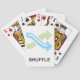 El icono de baraja con flechas verdes y azules y la palabra "shuffle". Este diseño parece realmente efectivo en estas tarjetas de reproducción