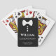 Esta divertida baraja de cartas está diseñada como un regalo para los bodas. Las espaldas son negras con una corbata blanca y botones. El texto es blanco y dice "Groomsman" con un lugar para su nombre, el nombre de la pareja y la fecha del boda. Un gran regalo para agradecerle por ser parte de su fiesta de bodas.