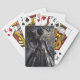 This detailed steampunk fantasy artwork of the fashion for a darkness demon with lace-like wings in shades of black and gray on this artwork poker cards.
