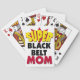Agarra a esta supernegra madre del cinturón jugando cartas mientras espera tu clase de artes marciales. Es una linda idea de regalo de Día de la Madre, Cumpleaños o Navidades. Un diseño de texto con colores rojos y amarillos dominando el texto.