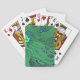 Patrón de circuito impreso jugando cartas en verde, azul y púrpura.