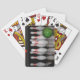 Un mazo de cartas con una bola de boliche a punto de chocar contra los pines.
