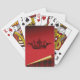 Elegante baraja de cartas de juego con gráficos de fondo rojo, que parecen estar acurrujándose, desde abajo, y mostrando bajo ella el clásico patrón tartán de clan rojo, negro y amarillo de MacQueen. Obra de arte de una corona hecha en rojo decora el medio de la tarjeta. Personalizar para añadir tu propio texto a esta elegante baraja de cartas.