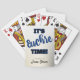 Estas cartas de juego personalizadas son el regalo perfecto para el jugador euchre en tu vida. Dicen: "Es Hora Euchre", en azul y negro. Puede personalizar "PROPIEDAD DE" así como el nombre en la parte inferior.