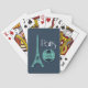 Este arte ofrece un diseño de la torre Eiffel en trullo en un fondo azul marino.