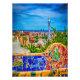 Barcelona, España — una de las ciudades más bellas del mundo. Las estructuras únicas de esta imagen fotográfica son de Park Güell y el parque y el famoso banco fue diseñado por el artista Antoni Gaudi, encargado por Eusebi Güell. Esta elegante impresión le permitirá realzar su decoración artística. Este es un encantador regalo para el viajero que ama las obras de arte de Gaudí y la ciudad de Barcelona. La imagen ha sido firmada por el artista. Foto © de T.K. Goforth. Todos Los Derechos Reservados.