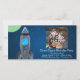 Celebrar el cumpleaños del niño o la ocasión especial con este fresco cohete espacial en el espacio ultraterrestre. Cielo azul oscuro con estrellas y planetas coloridos, y un cohete plateado disparando a través del cielo. Colorido y luminoso. Todos los diseños Copyright © 2012 www.CustomInvitesOnline.com