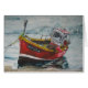 La pintura al óleo de un barco de pesca rojo cuando se hace todo el trabajo y de todo es reservada.