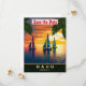 Invitación de boda de Oahu save the date, tarjeta postal de viaje. Barcos de vela en hermosa puesta de sol en colores vibrantes.
