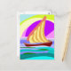 ¿Te encuentras soñando despierto con navegar? Un diseño de postal de un cielo arco iris con una velera de arte abstracto colorida es de lo que se hacen los sueños de navegación. Cada color del arcoiris en el cielo y en el mar está dominado por un diseño de barco de vela de arte abstracto.