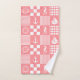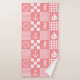 Ropa de toallas de baño con patchwork rosa con revisiones y rayas geométricas, así como caballitos de mar, veleros, anclajes y ruedas de los barcos.