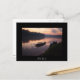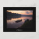 Postal con un bote en el río Tambopata en la selva amazónica al este del Perú cerca de la frontera brasileña durante el amanecer con una frontera negra y el texto: Perú.