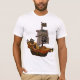 Piratas deambulando por el mar causando estragos. Bueno, al menos eso es lo que Hollywood nos haría creer. Como sea, este es un diseño impresionante de un barco pirata. Este barco pirata tiene un cráneo y huesos cruzados sobre él y en la parte superior del mástil hay una bandera con cráneo y huesos cruzados. Este diseño de barco pirata se ve genial en esta camiseta masculina. Perfecto para usted o como regalo