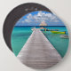 Abotone con los barcos múltiples en un embarcadero en la laguna clara de la turquesa de una isla tropical en Polinesia francesa en el Océano Pacífico.