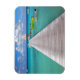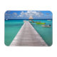 Imán fotográfico rectangular con múltiples botes en un espigón en la clara laguna turquesa de una isla tropical en la Polinesia Francesa en el océano Pacífico.