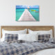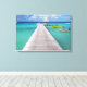 Impresión de lonas de múltiples botes en un espigón en la clara laguna turquesa de una isla tropical en la Polinesia Francesa en el Océano Pacífico.