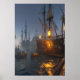 Muchos barcos piratas en el mar por la noche. Este es un arte generado por IA.