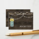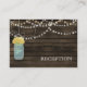 Barnwood rústica, colgando luces de cuerda con flores amarillas en una recepción de bodas con jarros de albañil invitan. También hay productos de coincidencia disponibles.