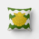 "Barry ondeó vert y argent, vieira de una pezuña de león." La parte posterior de la almohada es un patrón medieval en colores coordinados.