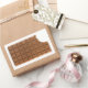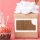 Gran barra de chocolate con un pegatina de mordedura que falta