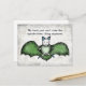 Bat With A Bad Back presenta un murciélago con problemas médicos con la espalda dura que ya no puede seguir acatando la "cosa de arriba abajo". En blanco, verde y azul.