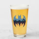 Round Bat Logo with Gotham City skyline and Bat Signal in the sky.